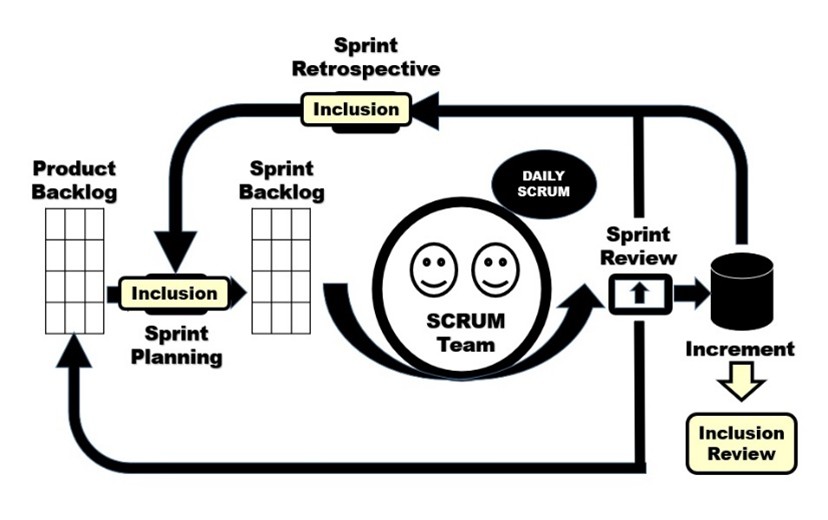 In Scrum-based processes, inclusion often competes directly with time and delivery pressure. Short iterations, evolving requirements, and prioritisation driven by visible value can result in inclusion being postponed or fragmented if it is not made explicit. Without deliberate effort, inclusion risks becoming something that is “planned for later sprints” but never fully addressed.