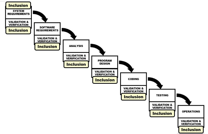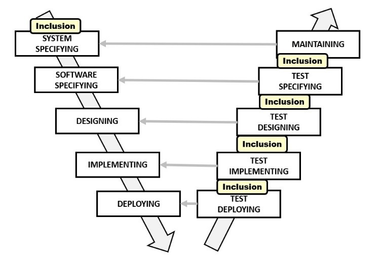 The V-Model lends itself well to inclusive practices because of its emphasis on traceability between specification and validation. Inclusion can be meaningfully embedded when access needs and inclusive requirements are made explicit on the specification side and are clearly linked to corresponding verification and validation activities.